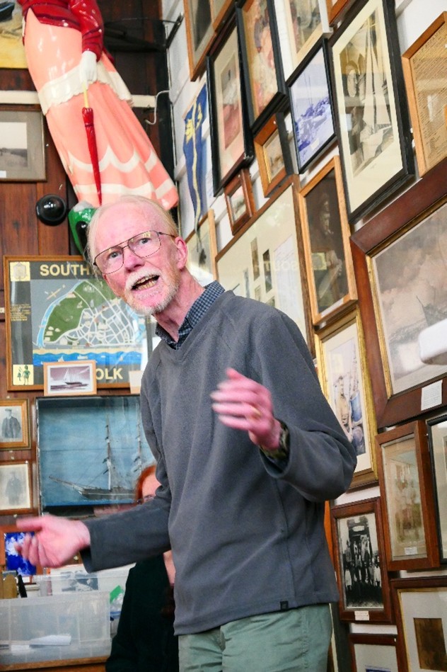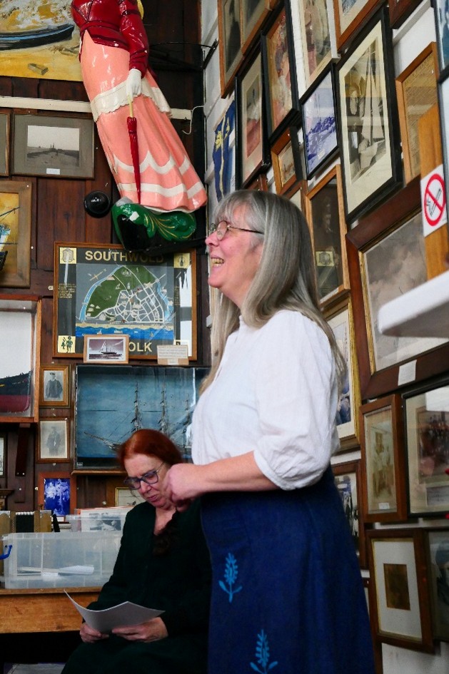 About 60 to 70 people packed into the small room with its colourful display of model boats, paintings, photographs and other artefacts from Southwold’s fishing and maritime past to hear Katie talk about classical composers Vaughan Williams’ and Butterworth’s excursions to “collect” folk songs and tunes from rural and coastal areas, as was fashionable in the early part of the 20th century, and in particular their visit to Southwold.