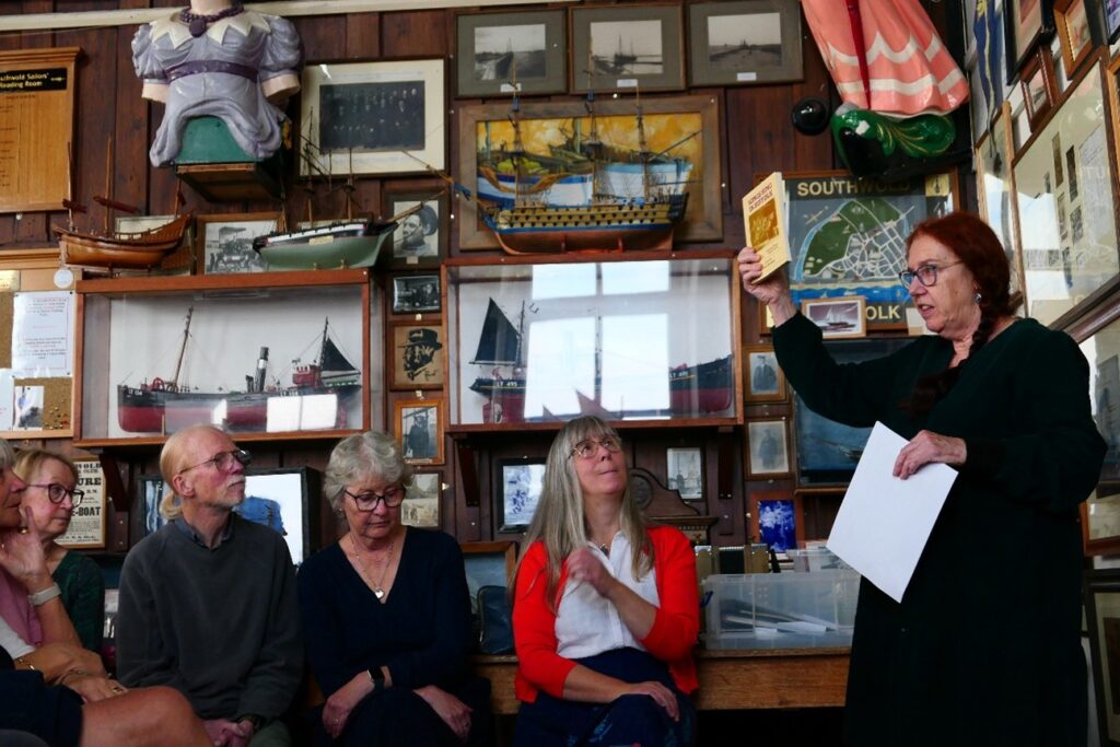Thanks are due to Steph Burridge, with help from Robin, at Southwold Bookshop who kindly set up and managed the event and the ticket sales, and to Stephen Wells, Trustee at SRR, for opening up and arranging the seating in the Sailors’ Reading Room.